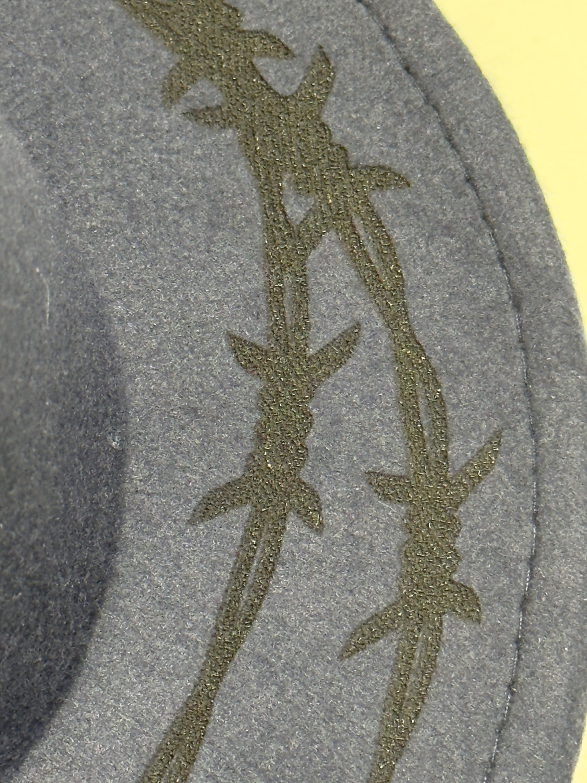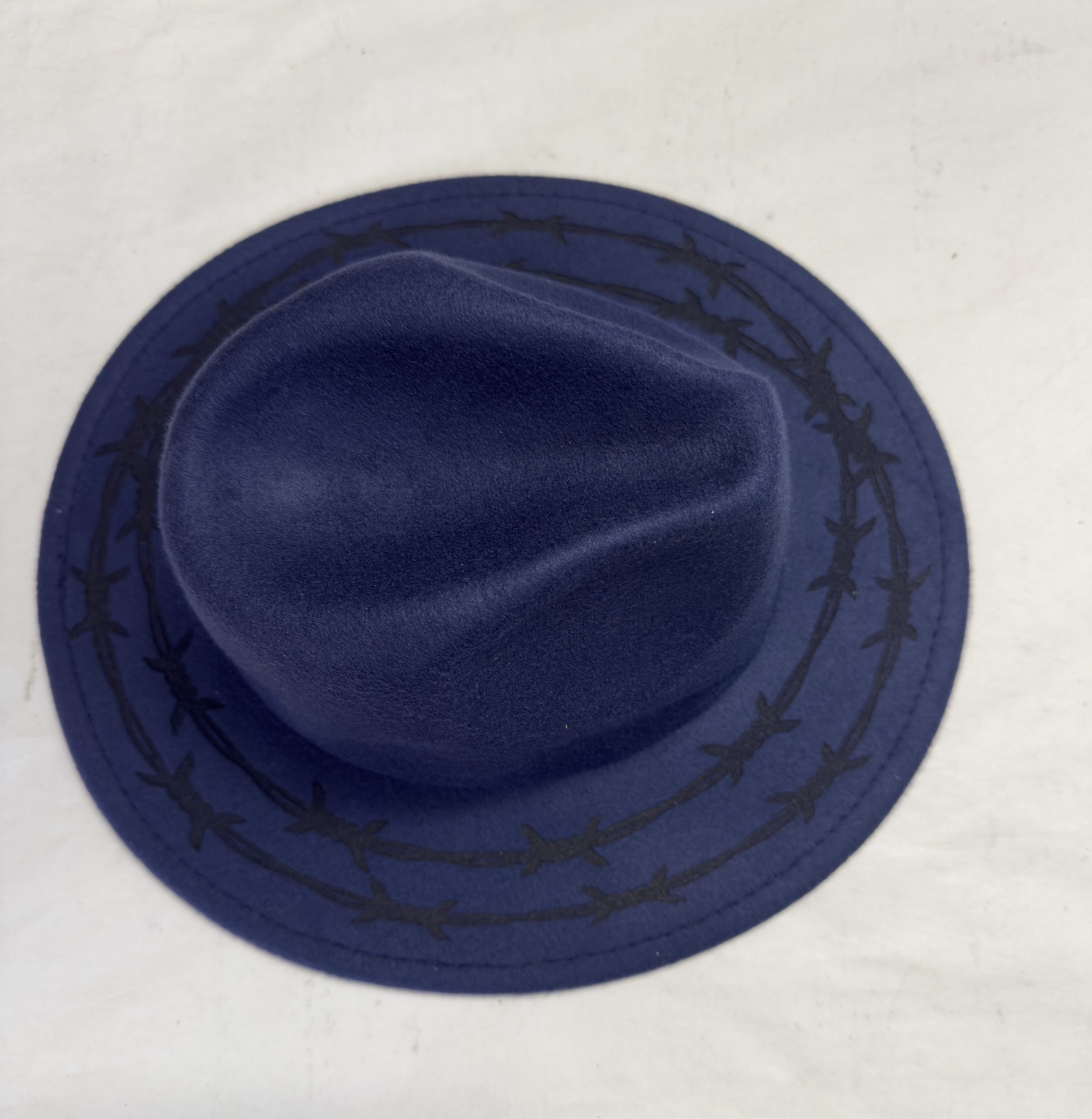 Fedora Hat Barbed Wire Engraved. Size 57cm. 100% Polyester.