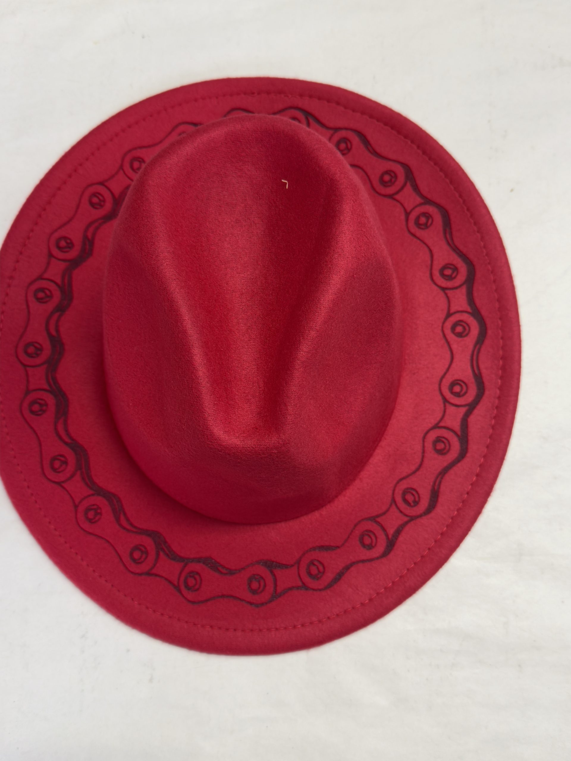 Fedora Hat Bike Chain Engraved. Size 57cm. 100% Polyester.